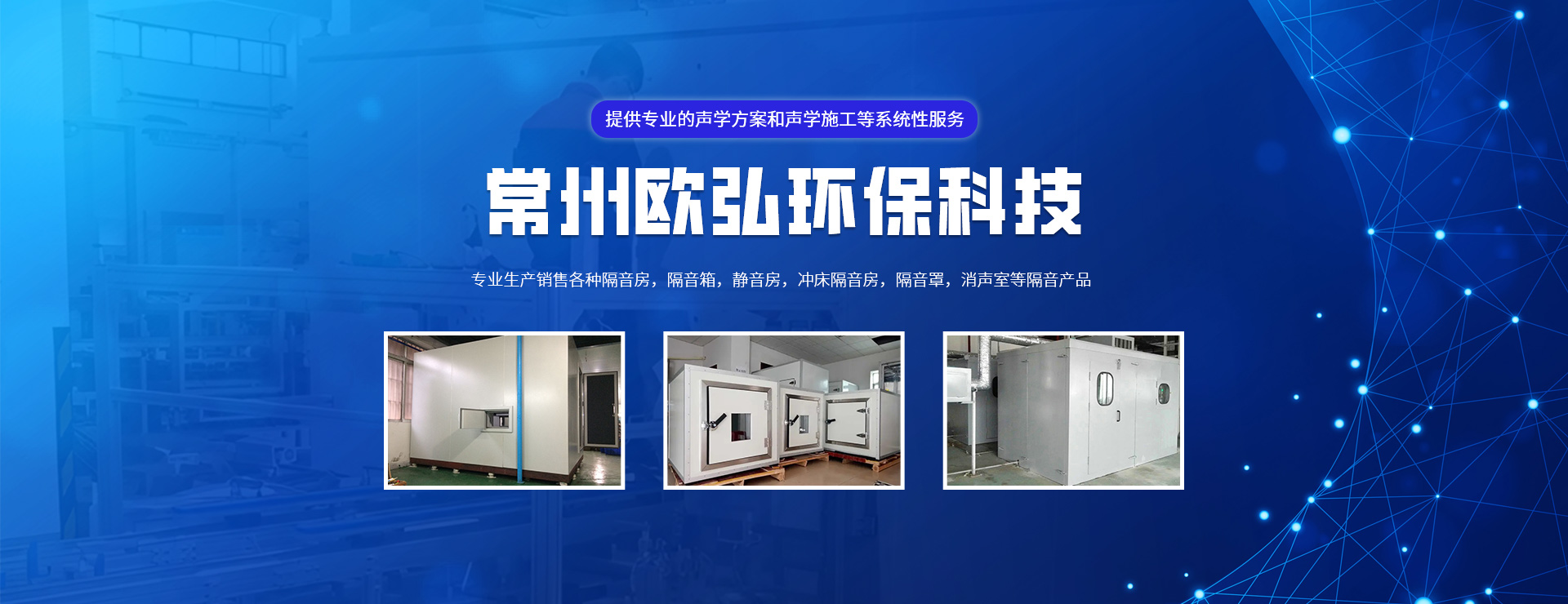 常州歐弘環(huán)??萍加邢薰臼且患覍?zhuān)注噪聲治理的企業(yè),公司專(zhuān)注生產(chǎn)銷(xiāo)售各種隔音房,隔音箱,靜音房,沖床隔音房,隔音罩,消聲室等隔音產(chǎn)品??蛻?hù)涵蓋汽車(chē)、家電、醫(yī)療、健身器械等眾多行業(yè)?! ∥夜緦?zhuān)注于為客戶(hù)提供聲環(huán)境深度檢測(cè);聲學(xué)方案研究、設(shè)計(jì);聲學(xué)產(chǎn)品研發(fā)、優(yōu)選;聲學(xué)施工與驗(yàn)收的一整套聲學(xué)系統(tǒng)解決方案,是國(guó)內(nèi)成熟的聲學(xué)行業(yè)系統(tǒng)服務(wù)公司。  我們的服務(wù)領(lǐng)域:致力于研究并開(kāi)發(fā)高性能、高性?xún)r(jià)